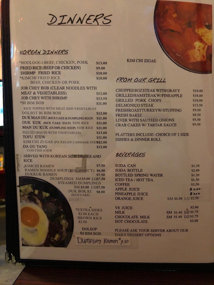 Onion's Cafe boasts a diverse menu that caters to various tastes and dietary preferences, including vegan and vegetarian options. Breakfast classics like fluffy pancakes and hearty egg dishes sit alongside Korean favorites like bi bim bop and dumpling ramen. Diner staples are served with a twist, ensuring there's something for everyone!